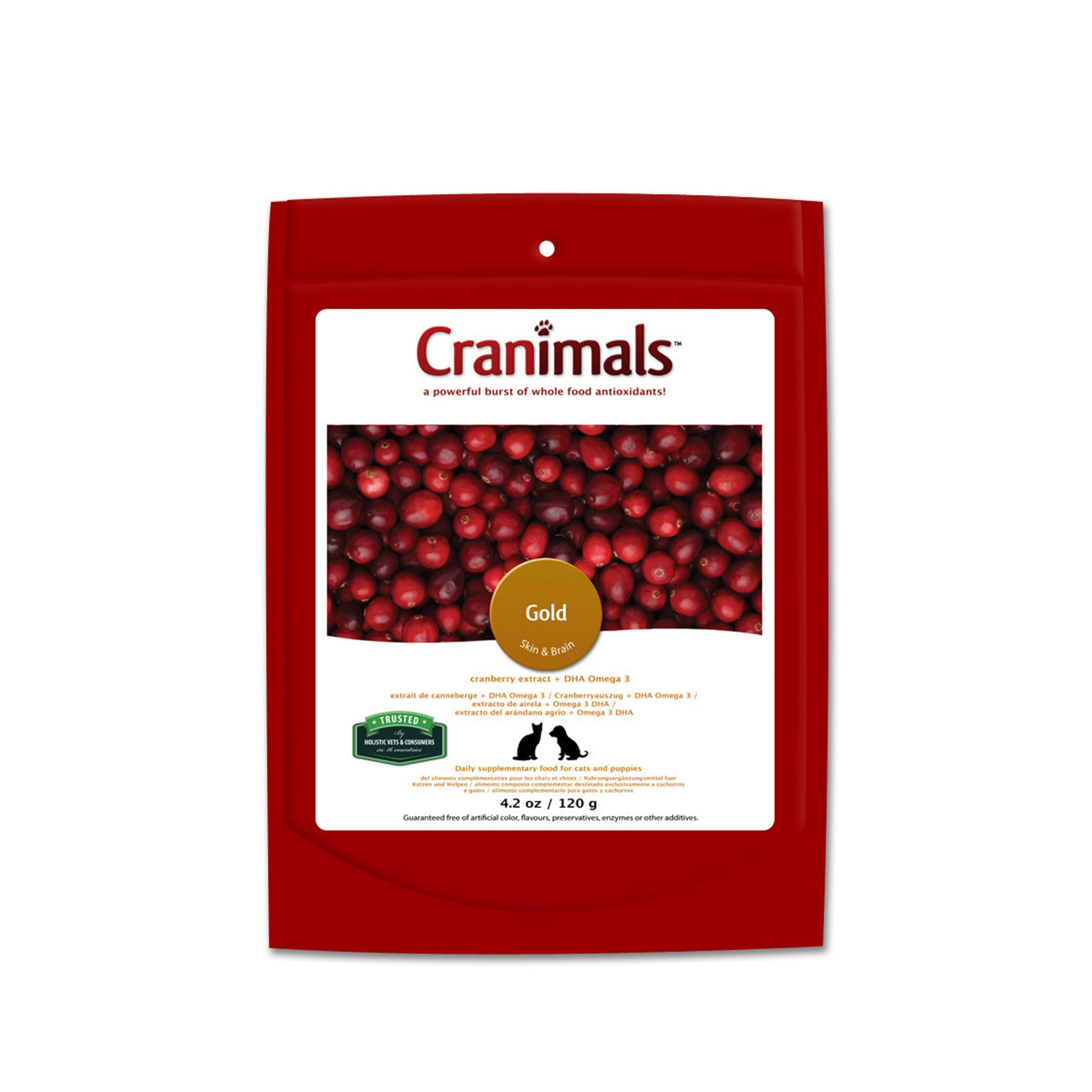 Cranimals Gold also contains the antioxidant beta carotene for healthy eyes, skin, membranes and immune function; choline for proper cell signalling, mental acuity and joint health; and the antioxidant anthocyanidins for urinary tract health. Cranimals Gold packs a powerful punch!