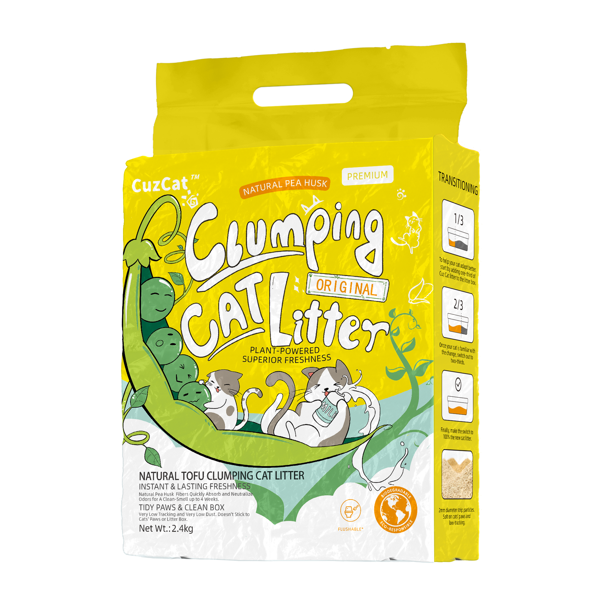 CuzCat Pea Husk Clumping Cat Litter's superior odour control, dust-free and tracking-free formula helps you forget that your cat litter is even there.