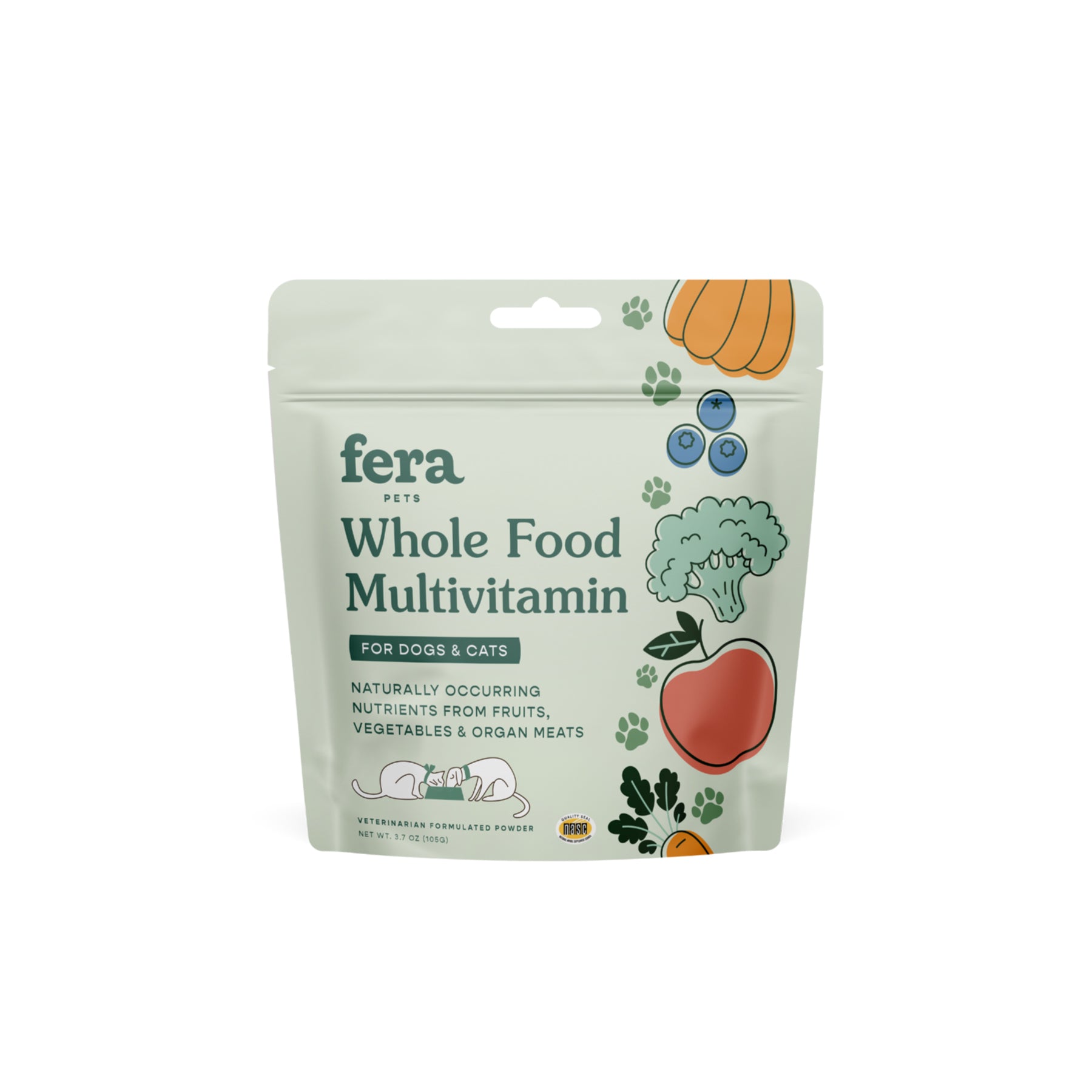 Fera Pets Whole Food Multivitamin Topper Supplement for Cats and Dogs is packed with a blend of fruits, vegetables and organ meats, providing your pet with vital whole foods for whole body health.