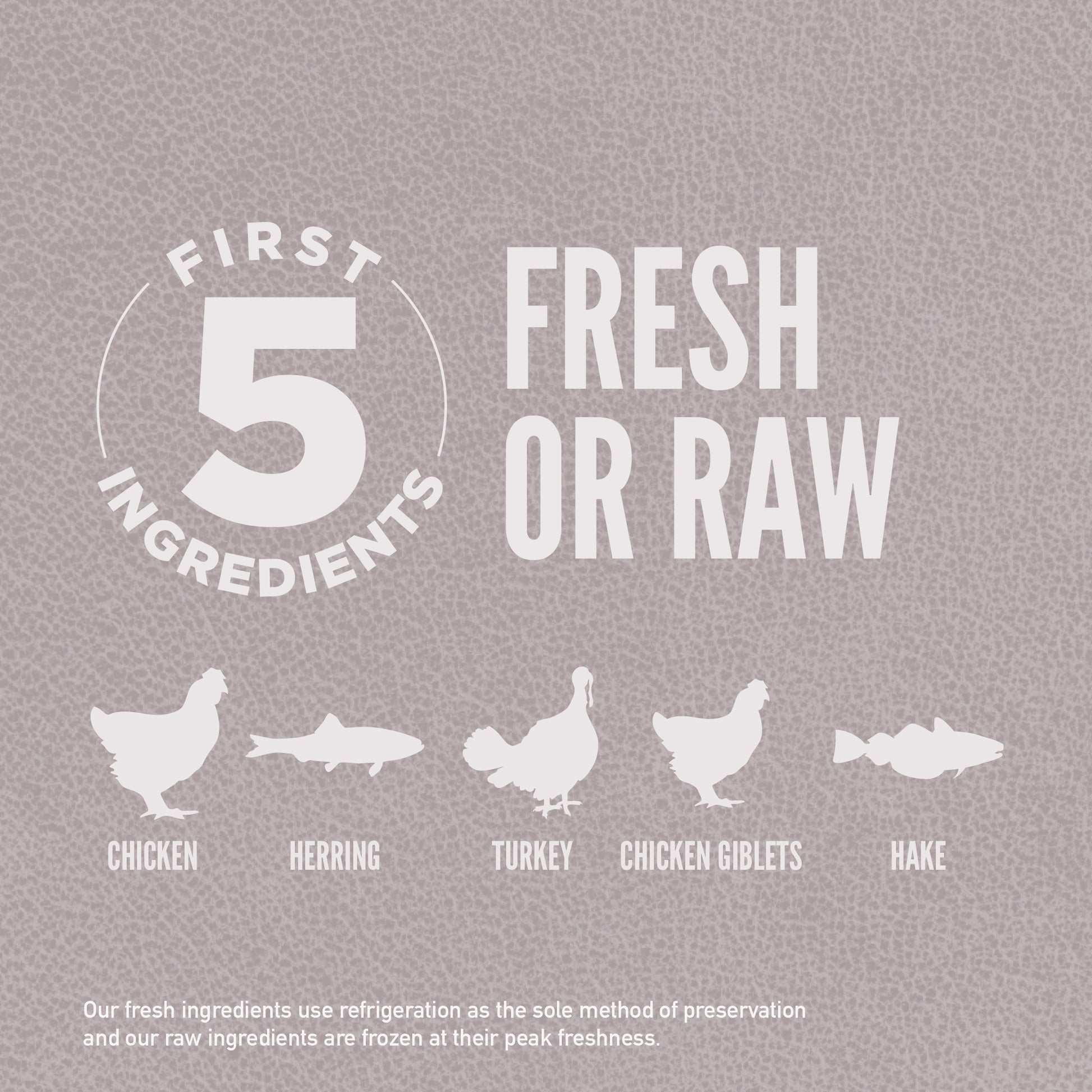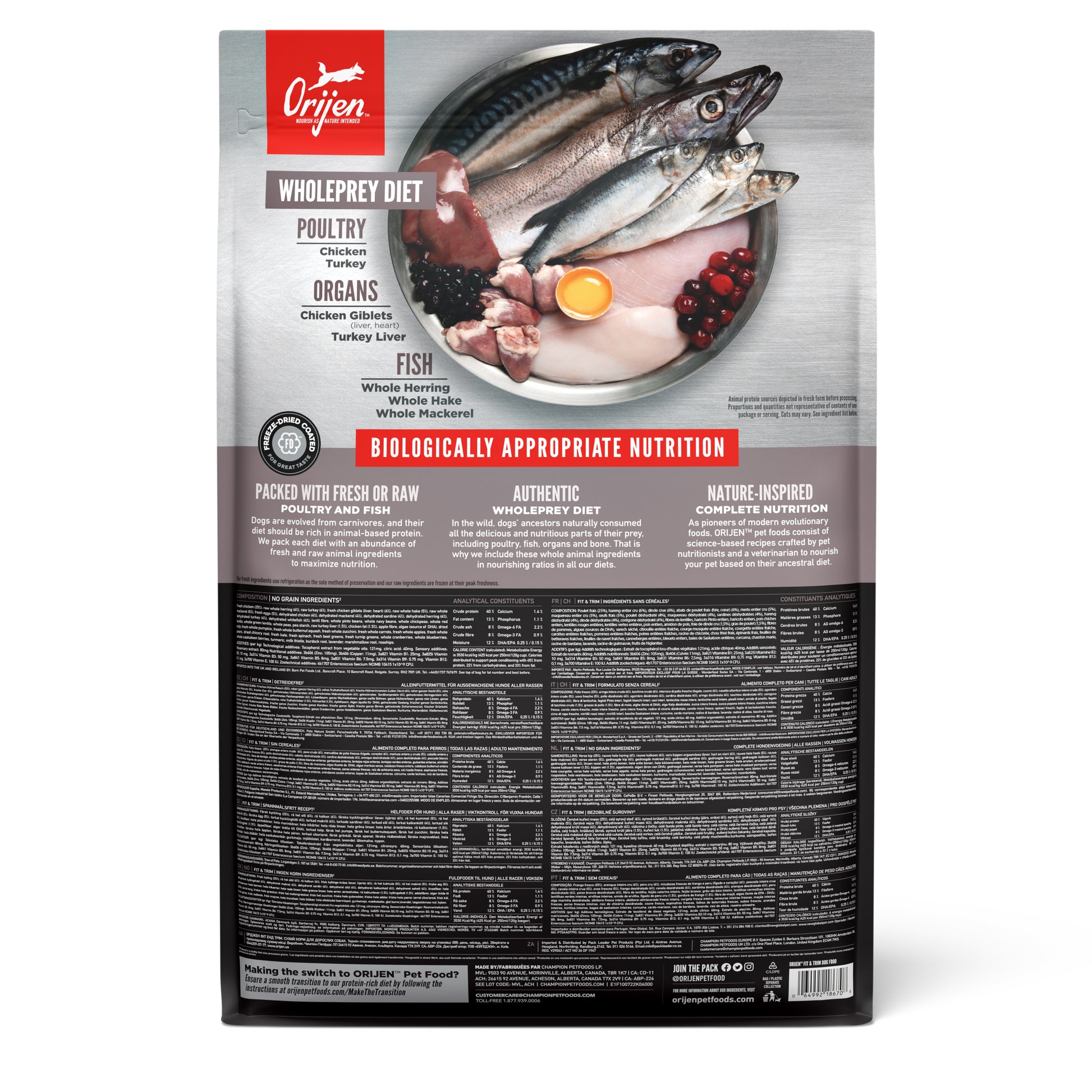 Help your dog thrive with the power of protein-rich recipes that provide peak nourishment. Dogs are ancestral carnivores, so they need a Biologically Appropriate diet rich and varied in whole animal ingredients. ORIJEN® Fit & Trim diet is optimised to support lean muscle mass and is specifically designed to support peak physical conditioning. Packed with WholePrey animal ingredients like organs and bone, ORIJEN food is made with the most nutrient-dense, succulent parts of the prey to deliver the nutrition dogs need. With 85% quality poultry & fish ingredients and a freeze-dried liver coating, this diet is beyond comparison.