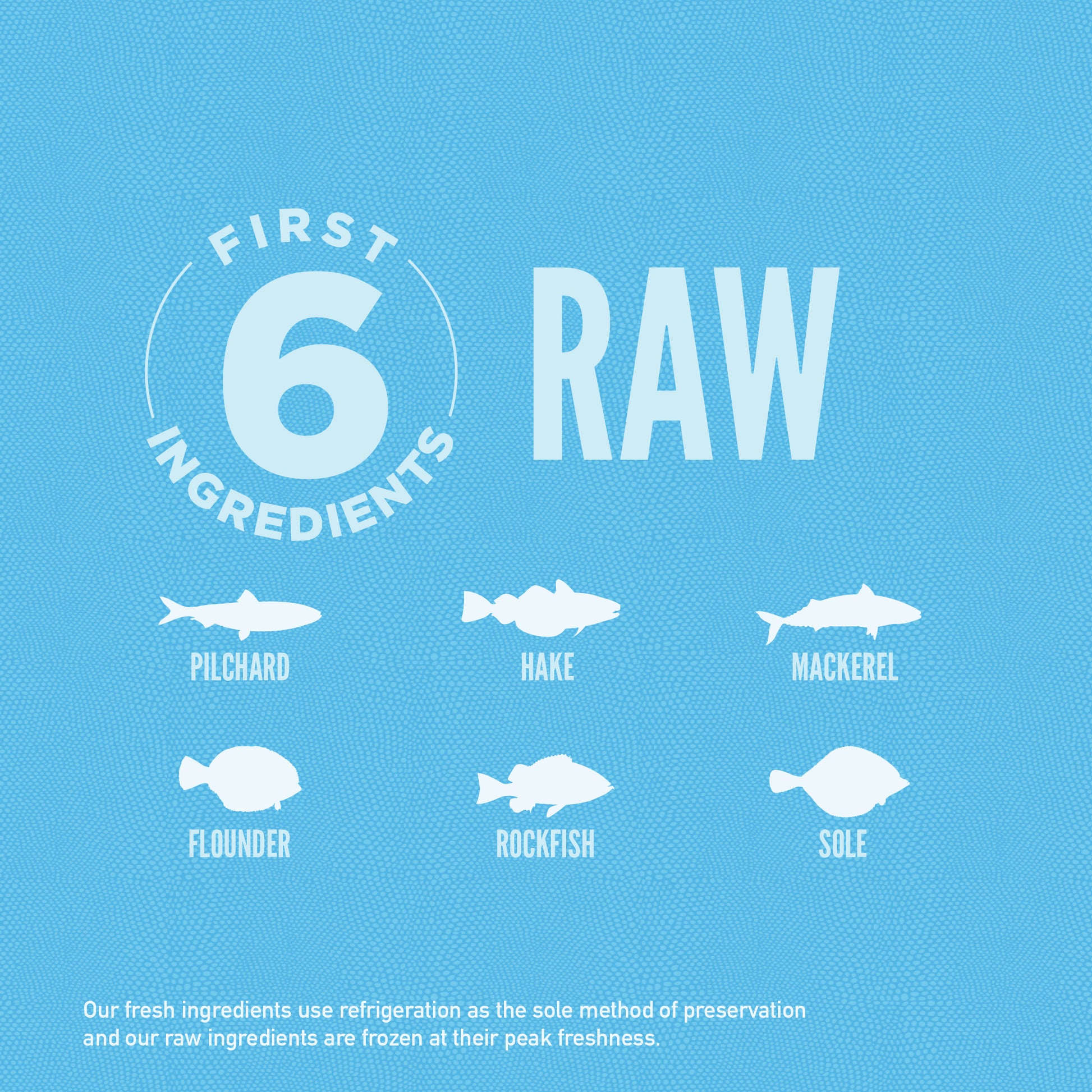 Help your cat thrive with the power of protein-rich recipes that provide peak nourishment. As obligate carnivores, modern cats are built like their ancestors and thrive on a Biologically Appropriate diet rich in protein and fat sourced from a variety of animal ingredients. ORIJEN® Six Fish diet is made with fish from raw* wild-caught pilchard, hake, mackerel, flounder, rockfish and sole. Packed with WholePrey animal ingredients like fish, organs and bone, ORIJEN Six Fish diet is made with the most nutrient-dense, succulent parts of the prey to deliver the nutrition cats need. With 85% quality animal ingredients and a freeze-dried liver coating, this diet is beyond comparison.
