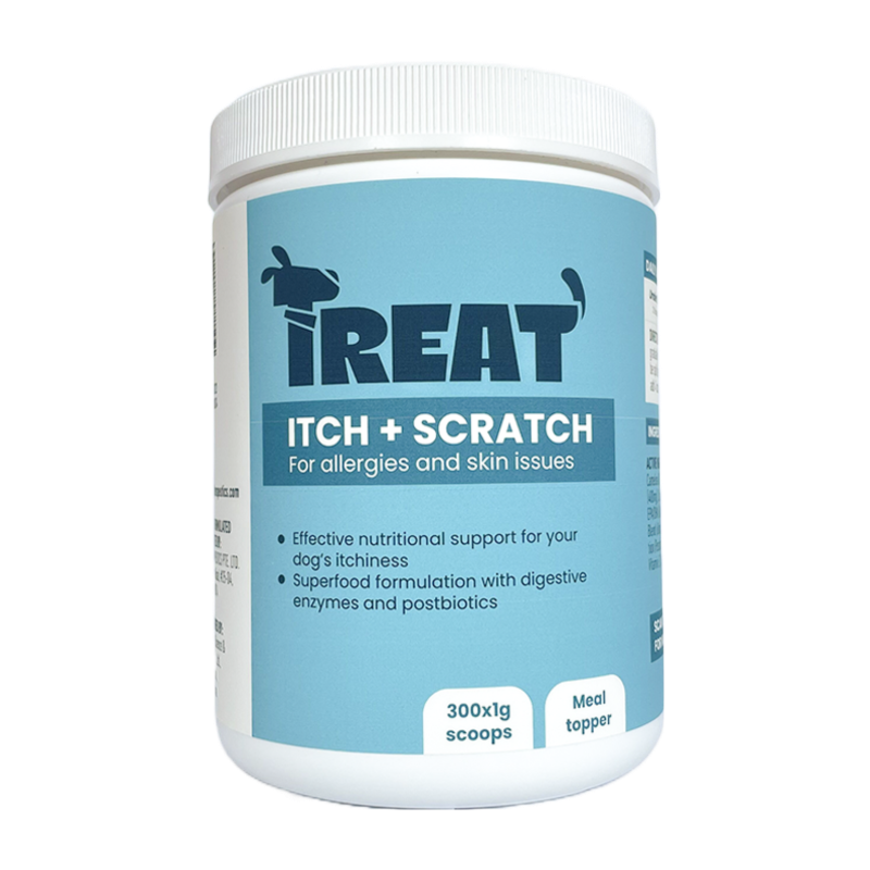 Treat Therapeutics Itch + Scratch is a specially formulated meal topper to help soothe irritated skin and allergies for long-term skin support.