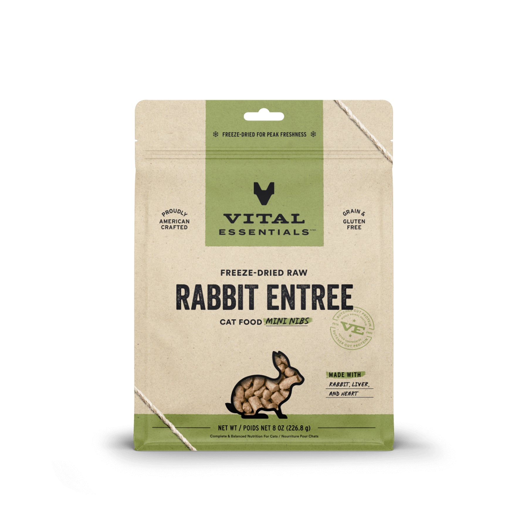 [3 for $135] Vital Essentials Mini Nibs Rabbit Entree Freeze Dried Raw Cat Food 8oz