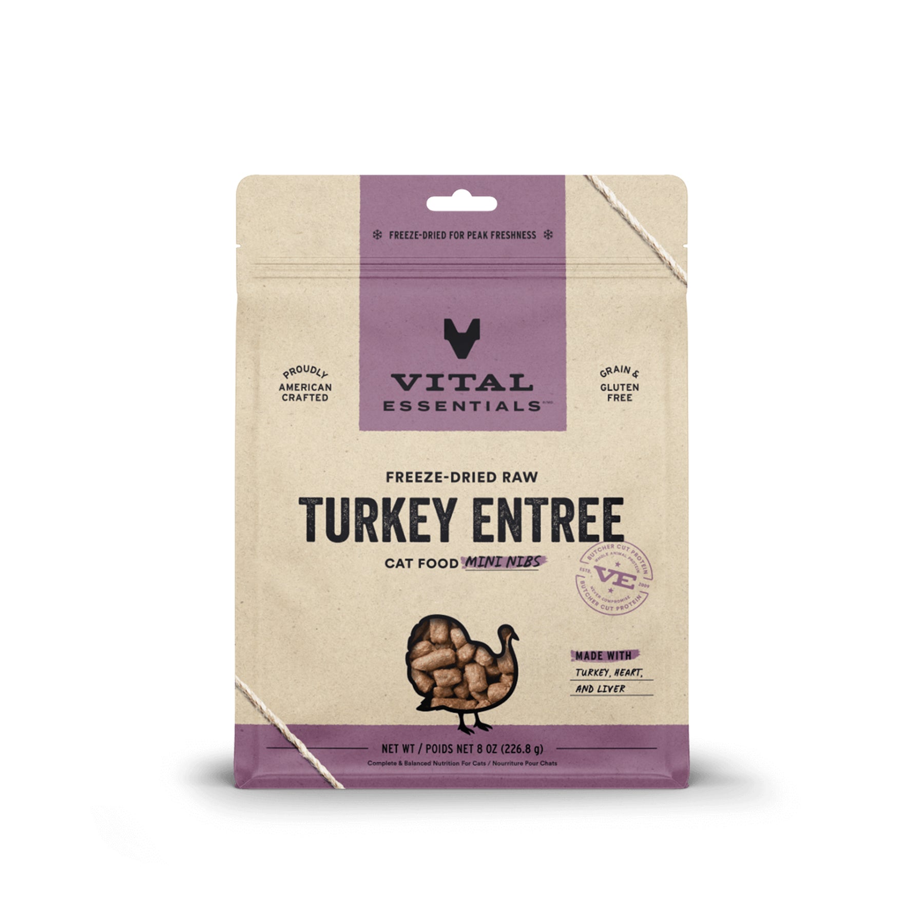 [3 for $96] Vital Essentials Mini Nibs Turkey Entree Freeze Dried Raw Cat Food 8oz