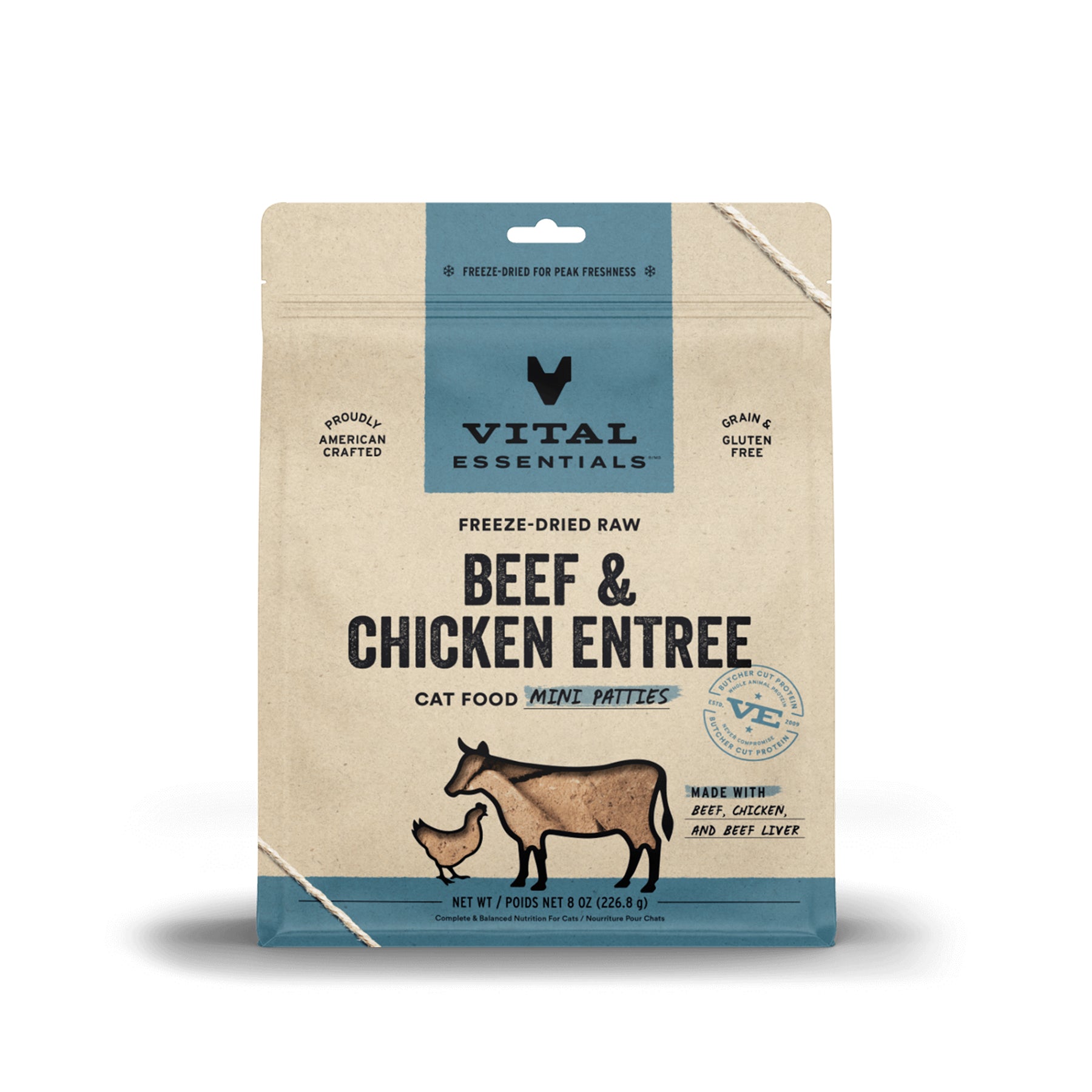[3 for $96] Vital Essentials Mini Patties Beef & Chicken Entree Freeze Dried Raw Cat Food 8oz