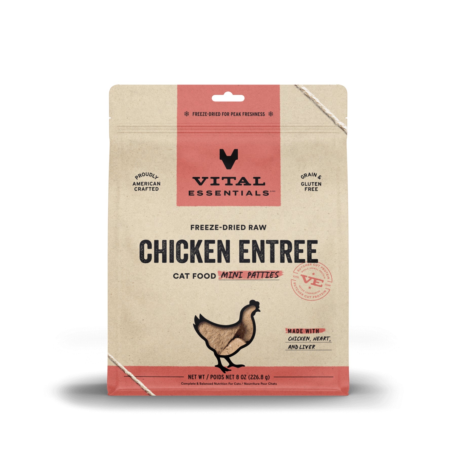 [3 for $96] Vital Essentials Mini Patties Chicken Entree Freeze Dried Raw Cat Food 8oz