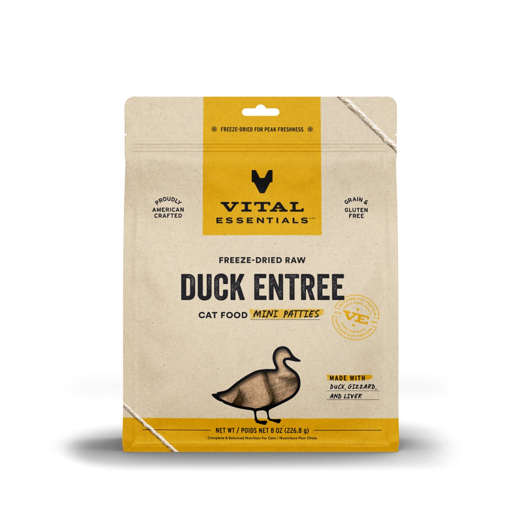 [3 for $114] Vital Essentials Mini Patties Duck Entree Freeze Dried Raw Cat Food 8oz