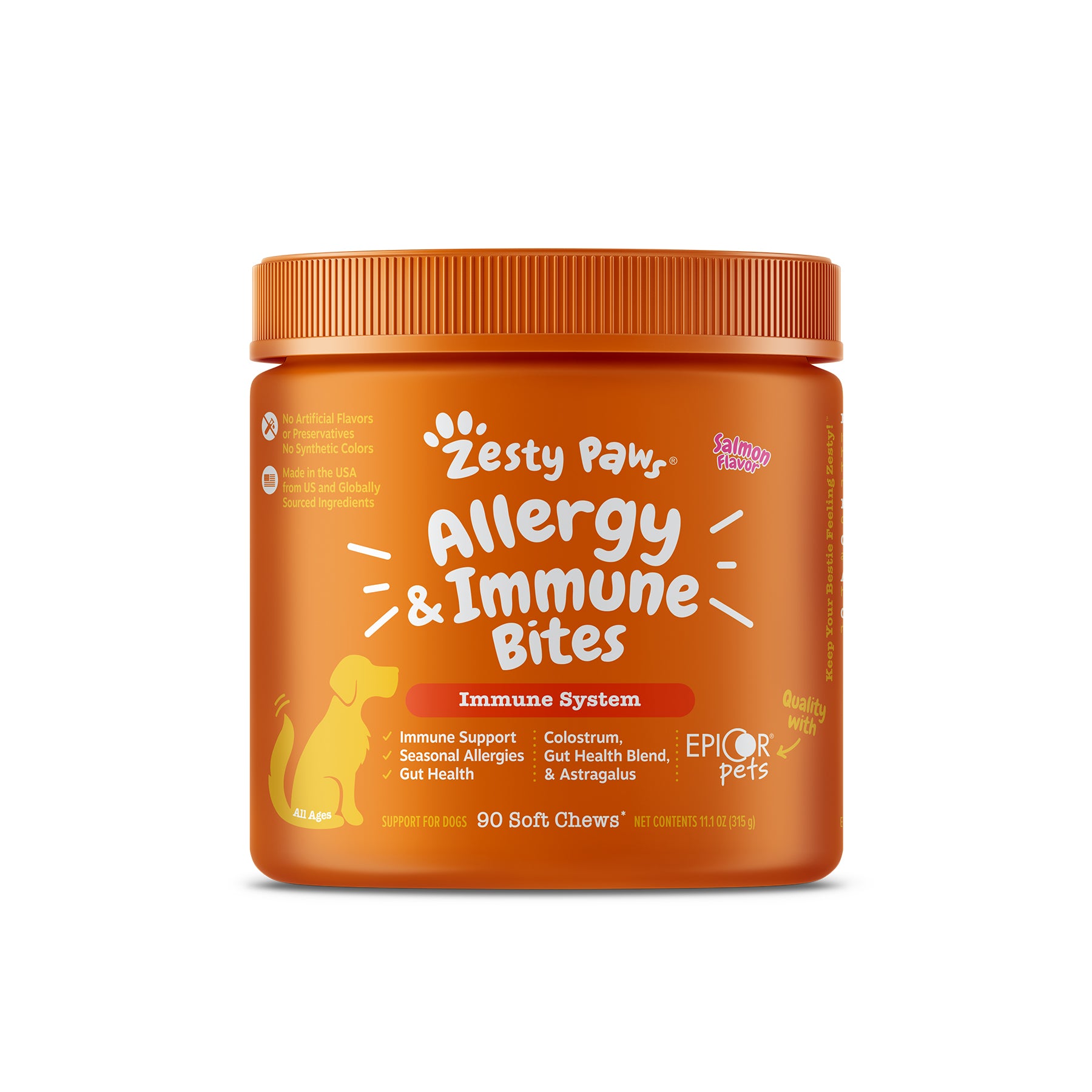 - Supports the immune system – Zesty Paws Allergy & Immune Bites (Previously Aller-Immune Bites) are soft chews that support immune, histamine, and digestive health for dogs with skin, seasonal, and environmental allergies.